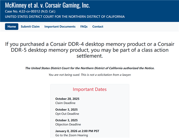 这起集体诉讼被叫做“McKinney et al。 v。 Corsair Gaming, Inc。”,2022年倡议的。