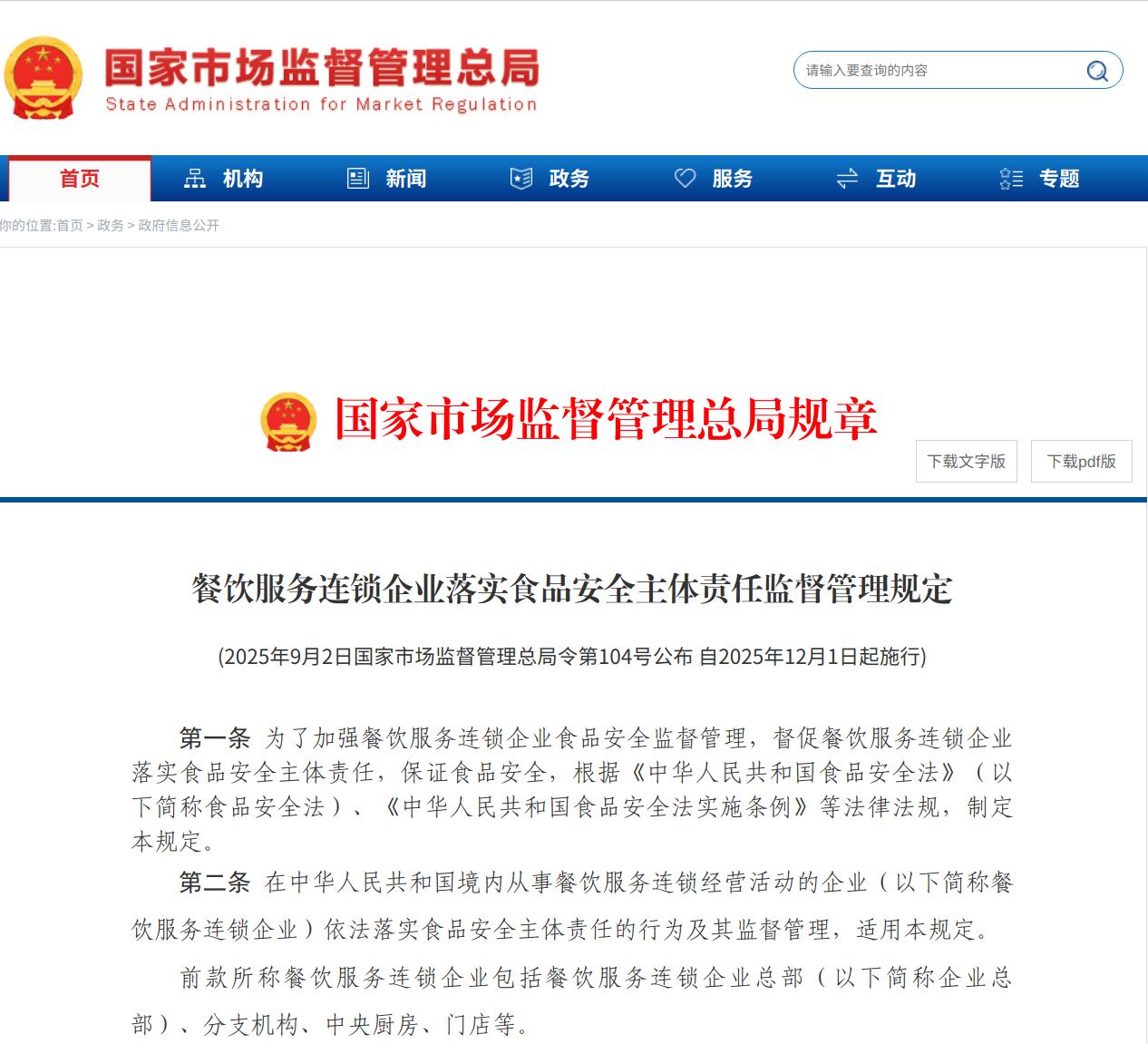 西贝、海底捞、必胜客、杏花堂、喜茶、一点点……现正在出去吃饭,商场里同一粉饰、同一菜单、同一办事的连锁店越来越多了。数据显示,我国餐饮连锁化率已从2020年的15%提拔至2024年的23%,行业规模化历程显著加快。然而,行业的快速成长也出“沉扩张、轻办理”的矛盾。现实中,却疏于对终端门店特别是加盟店的本色性办理,导致“总部管不了门店”“出事立即甩锅”,办理义务悬空,食物平安底线失守,不只了消费者信赖,更着行业全体的诺言基石。连锁模式的焦点正在于尺度化取可复制,这毫不能止于同一的店面取菜单,更必需贯穿于食物平安这终身命线。当同一的招牌挂起来,同一的办理轨制可否实正落地,已成为决定行业健康成长的环节。这一行业痛点,近日市场监管总局发布《餐饮办事连锁企业落实食物平安从体义务监视办理》,把总部和分支机构以及门店的义务慎密毗连起来,进一步锁定食物平安。